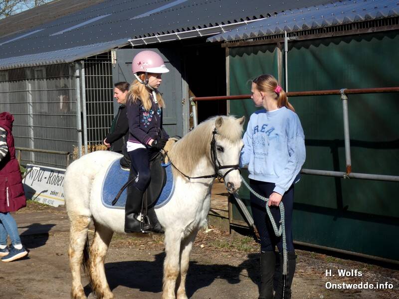 Er zijn altijd vrijwilligers van de manege aanwezig voor begeleiding.