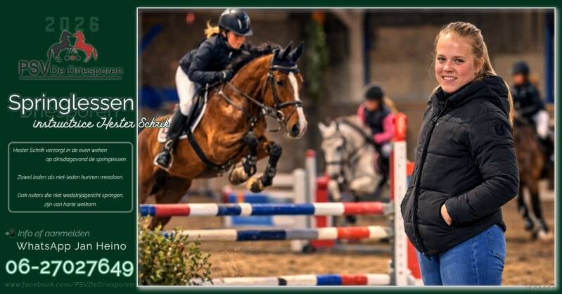 Vier springclinics met Renate Beuving georganiseerd door de Paardensportvereniging.