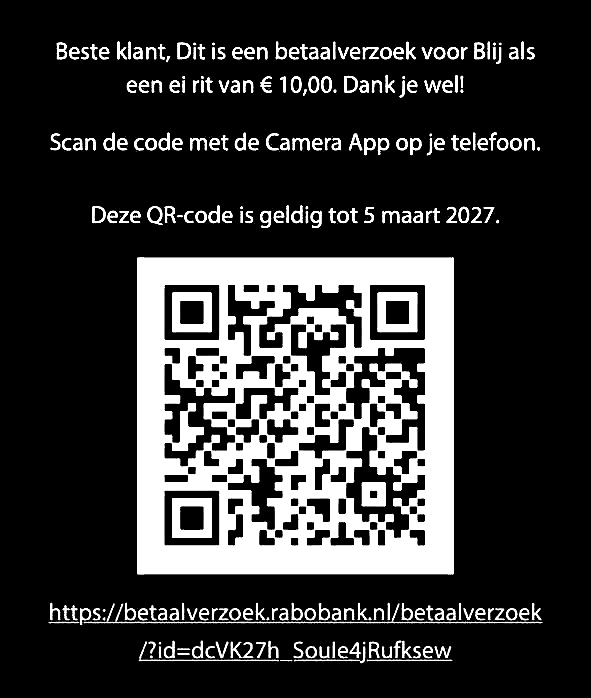 Betaling kan via een betaalverzoek / qr code worden betaald.