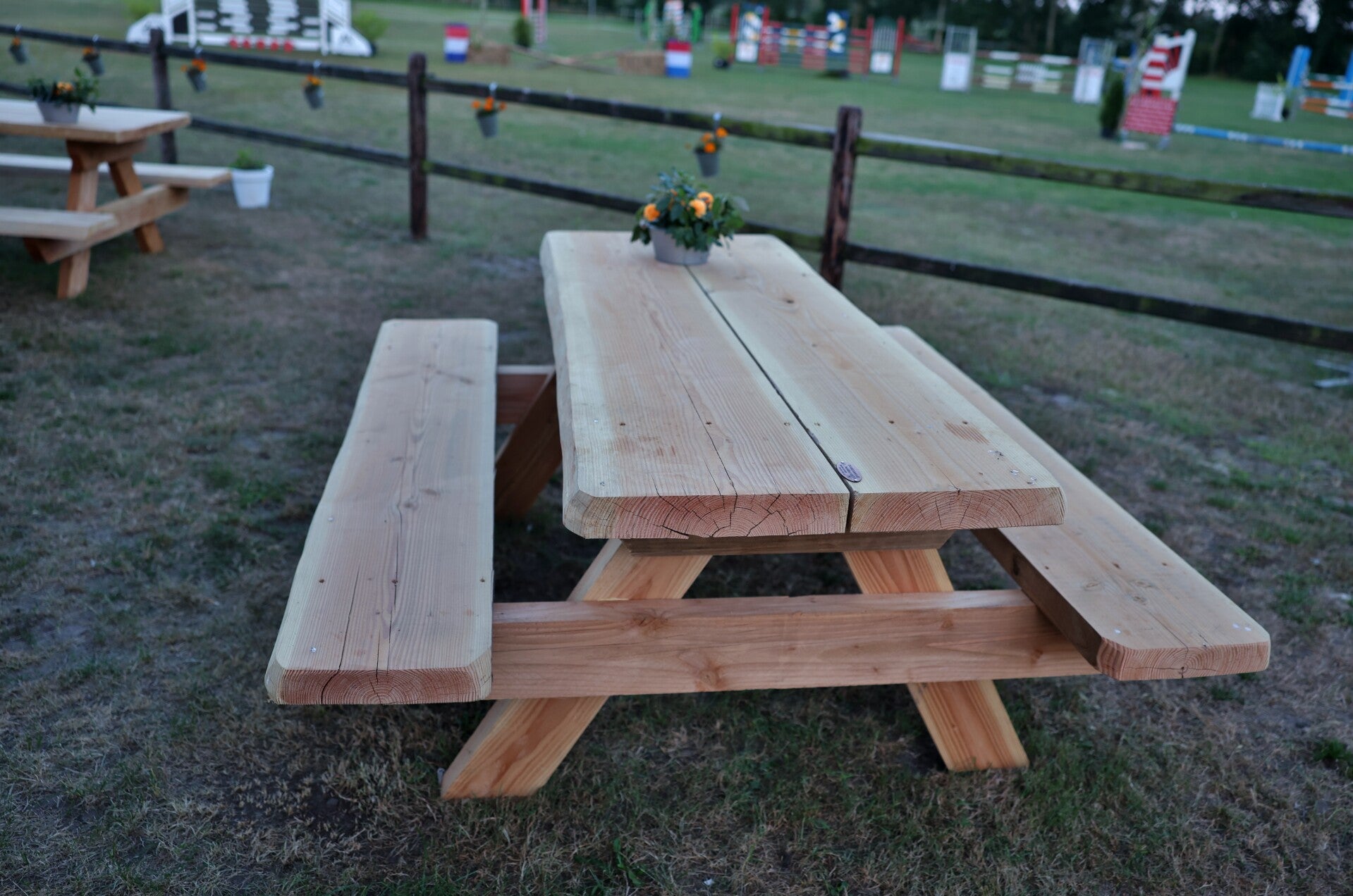 Er zijn 2 prachtige nieuwe pickniktafels geschonken aan de manege door,